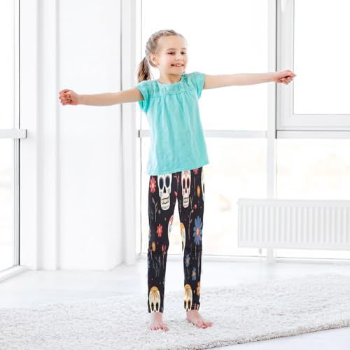 Toddler Girls Leggings Printed Yoga Pants Leggings Skull Head Blue Flower for Kids 5