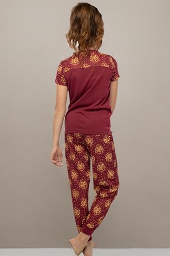 • BOLD GRAPHICS: Features the Hogwarts crest in gold foil print on a burgundy short sleeve top and an all over golden yellow Hogwarts crest and star pattern on the joggers and sleeves.