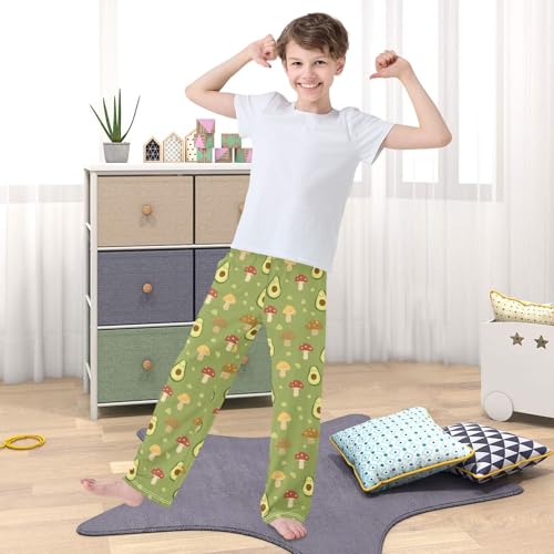 Pajama Pants Lounge Sleep PJ Bottoms Sleepwear Elastic Waist Drawstring S Avocado Mushrooms Green 1