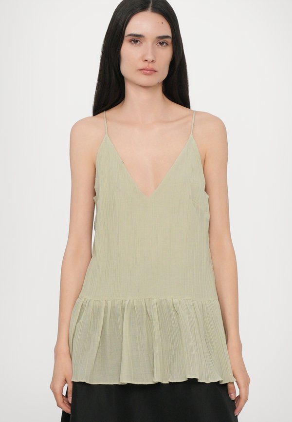 HOT ! PARCHMENT TEXTURED STRAP FLOUNCE TOP - Top - lime blossom