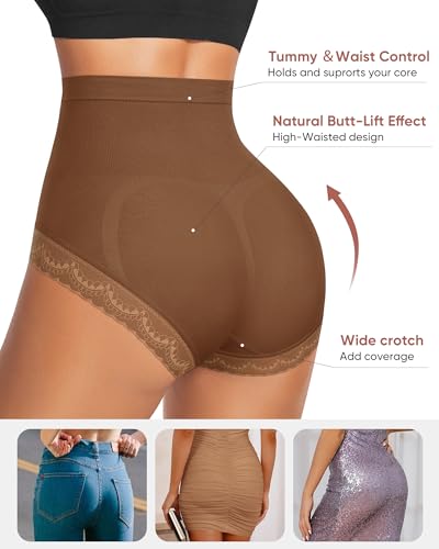 Women's Underwear 4 Pack High Waisted Tummy Control Ladies Panties with Lace Comfortable Briefs Full Coverage 6