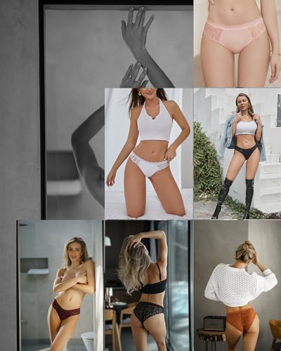 ROSYCORAL Sexy Underwear for Women Lace Cheeky Soft Hipster Low Rise Breathable Undies Cotton Bikini Panties 6 Pack 7
