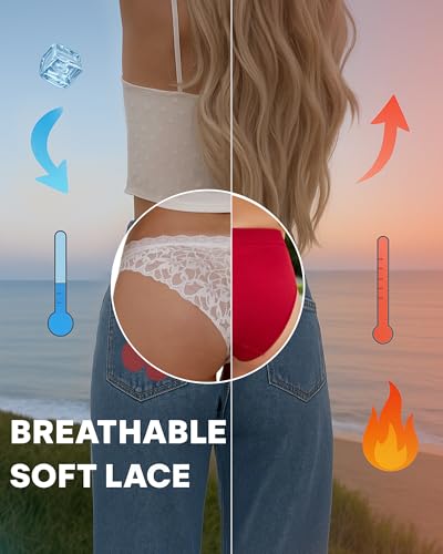 • Lace underwear: Experience barely-there ease with ultra-breathable lace panels covering sides and back, create maximum airflow and rapid drying, moisture evaporates 2x faster than regular underwear for women, keeping you cool during workouts, focused at work, or relaxed in sleep. The featherlight design transitions seamlessly between activities.