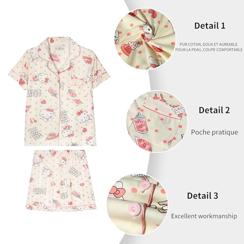 • PAJAMA DESIGN - Button down short sleeve shirt with elastic waistband shorts with cute anime pattern, I believe no woman or girl can resist this cartoon pajamas.