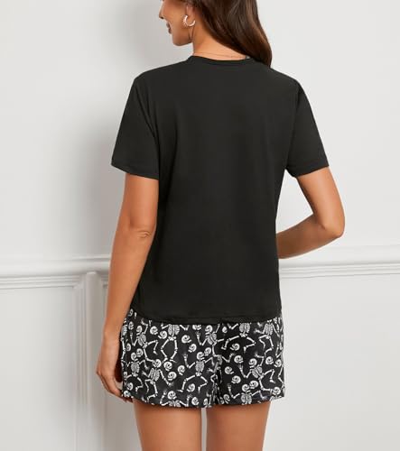 • Design: Halloween Short sleeve pajamas set with pull on closure, round neck and relaxed fit, lightweight and comfortable with elastic waistband for Halloween sleepwear shorts.