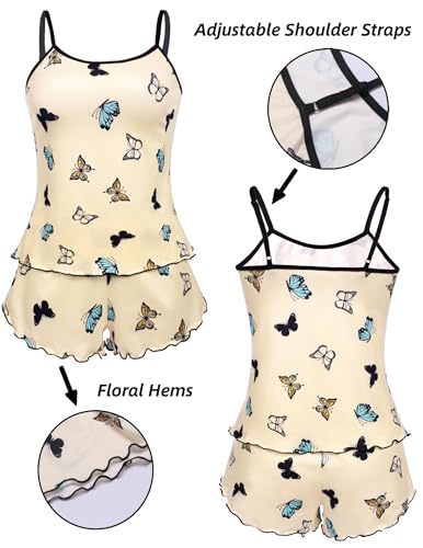 Ekouaer Womens Cami Pajama Sets 2 Piece Cute Print Pjs Soft Tank Top & Elastic Waist Shorts Camisole Lounge Set 2