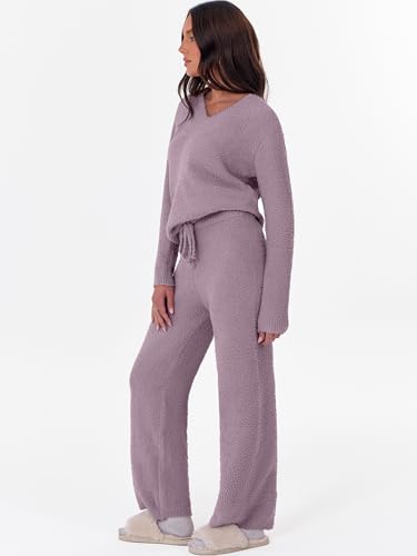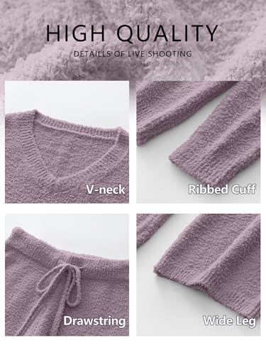 • Feature - Two piece sets for women feature with fuzzy fleece fabric, long sleeve, v neck, high waist with adjustable drawstring wide-leg pants, ribbed cuff, and pullover sweater top. Pajamas for women set is suitable for daily wear, home, pajama party, travel, vacation.