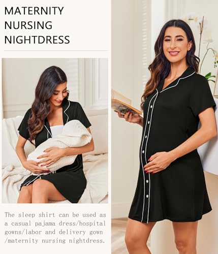 • 【Functional Nightshirt】Front button design makes the sleep shirt can be used as a casual pajama dress/hospital gowns/labor and delivery gown/maternity nursing nightdress. When you unbutton,you can feed your baby at any time.