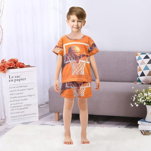 ALAZA Basketball Orange Sport Pajamas Set Short Sleeve Cotton Sleepwear Summer Pjs 2 Piece 5-14Y 5