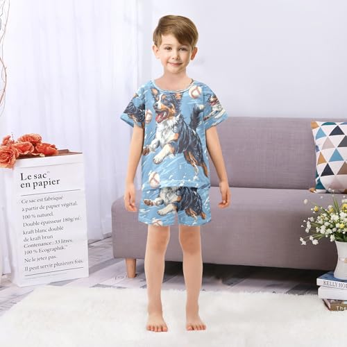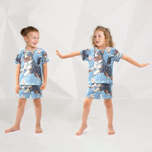 ALAZA Baseball Dog Blue Pajamas Set Short Sleeve Cotton Sleepwear Summer Pjs 2 Piece 5-14Y 2