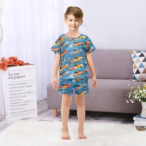 ALAZA Racing Car Blue Pajamas Set Short Sleeve Cotton Sleepwear Summer Pjs 2 Piece 5-14Y 6