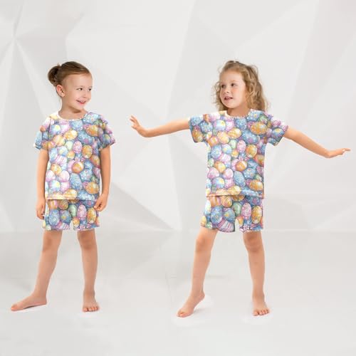 ALAZA Color Easter Egg Pajamas Set Short Sleeve Cotton Sleepwear Summer Pjs 2 Piece 5-14Y 5
