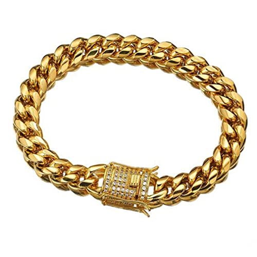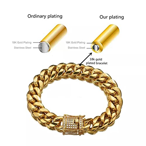 WXP 18K Gold Cuban Link Chain Necklace or Bracelet for Men Women 8mm 10mm 12mm 14mm 18mm Stainless Steel Miami Chain Gold Chain Necklace Hip Hop Jewelry 7.5-30inch 2