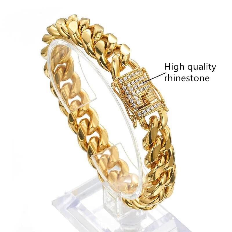 HOT ! WXP 18K Gold Cuban Link Chain Necklace or Bracelet for Men Women 8mm 10mm 12mm 14mm 18mm Stainless Steel Miami Chain Gold Chain Necklace Hip Hop Jewelry 7.5-30inch