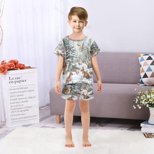 ALAZA Christmas Rabbit Bunny Deer Squirrel Pajamas Set Short Sleeve Cotton Sleepwear Summer Pjs 2 Piece 5-14Y 6