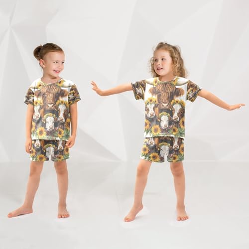ALAZA Family Highland Cow Sunflower Pajamas Set Short Sleeve Cotton Sleepwear Summer Pjs 2 Piece 5-14Y 6