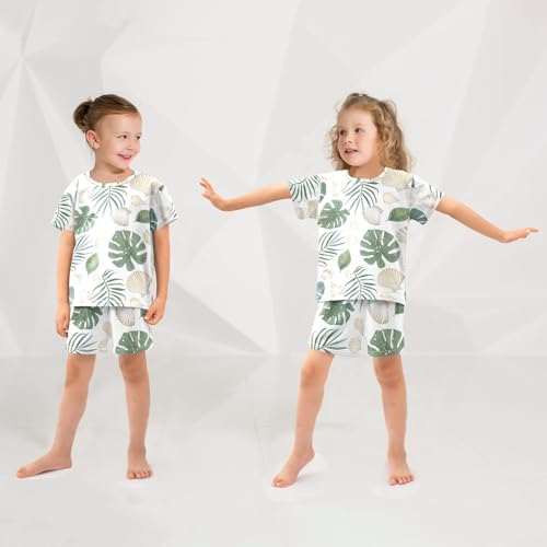 ALAZA Seashell Palm Leaves Watercolor Pajamas Short Sleeve 2 Piece Sleepwear Top and Bottom Pajama Set Unisex 6