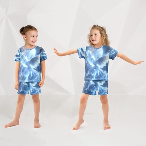 ALAZA Blue Phoenix Moon Pajamas Set Short Sleeve Cotton Sleepwear Summer Pjs 2 Piece 5-14Y 2