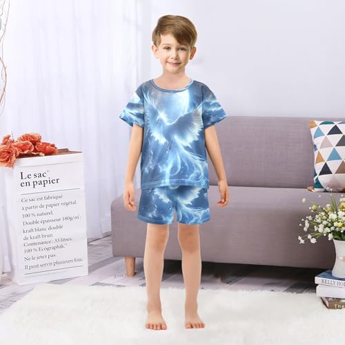 ALAZA Blue Phoenix Moon Pajamas Set Short Sleeve Cotton Sleepwear Summer Pjs 2 Piece 5-14Y 6