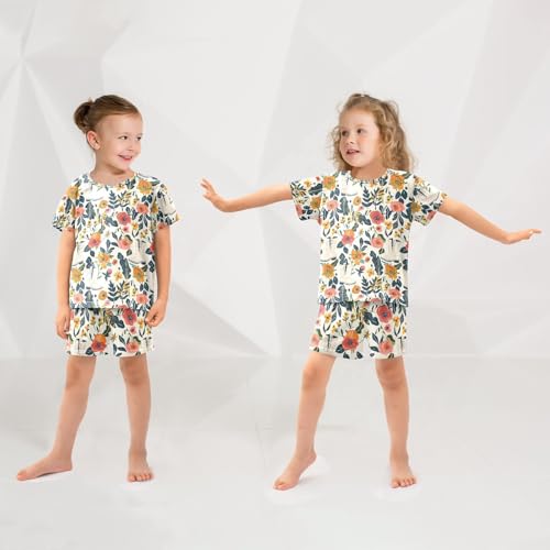 ALAZA Floral Boot Flower Retro Pajamas Set Short Sleeve Cotton Sleepwear Summer Pjs 2 Piece 5-14Y 2