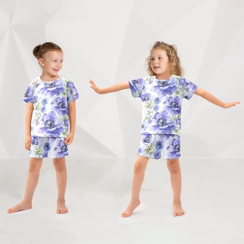 ALAZA Anemone Flower Pajamas Set Short Sleeve Cotton Sleepwear Summer Pjs 2 Piece 5-14Y 1