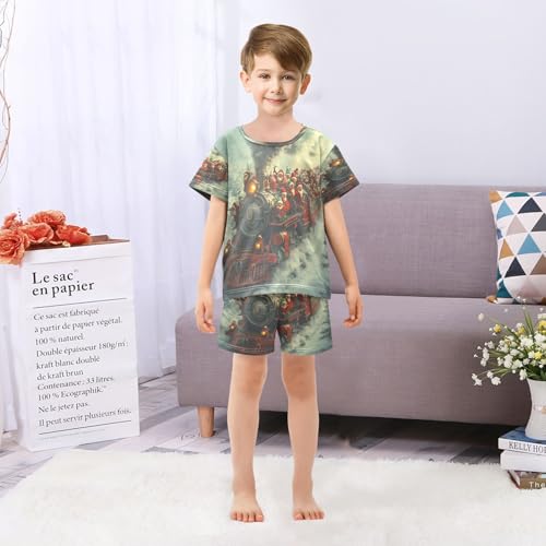ALAZA Train Santa Claus Merry Christmas Pajamas Set Short Sleeve Cotton Sleepwear Summer Pjs 2 Piece 5-14Y 6
