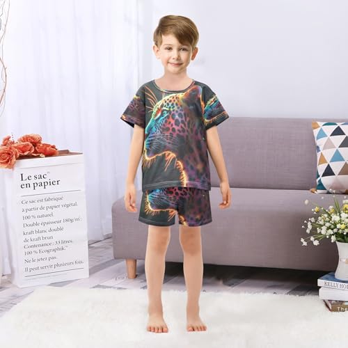 ALAZA Rainbow Color Leopard Pajamas Set Short Sleeve Cotton Sleepwear Summer Pjs 2 Piece 5-14Y 6