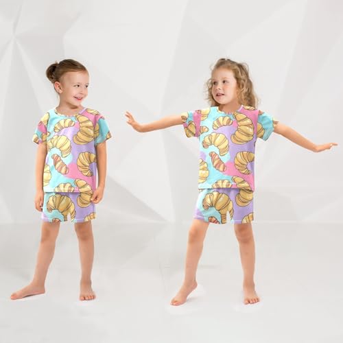 ALAZA Colorful Cute Croissant Bread Pajamas Short Sleeve 2 Piece Sleepwear Top and Bottom Pajama Set Unisex 2
