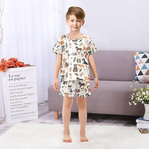ALAZA Merry Christmas Pug Dog New Year Pajamas Set Short Sleeve Cotton Sleepwear Summer Pjs 2 Piece 5-14Y 6