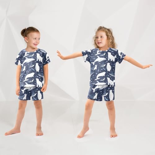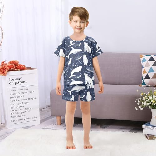 ALAZA Whale Bear Navy Blue Pajamas Set Short Sleeve Cotton Sleepwear Summer Pjs 2 Piece 5-14Y 5