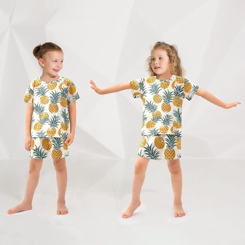 ALAZA Pineapple Fruit Retro Pajamas Short Sleeve 2 Piece Sleepwear Top and Bottom Pajama Set Unisex 2