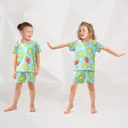 ALAZA Kiwis Strawberry Blue Pajamas Short Sleeve 2 Piece Sleepwear Top and Bottom Pajama Set Unisex 2