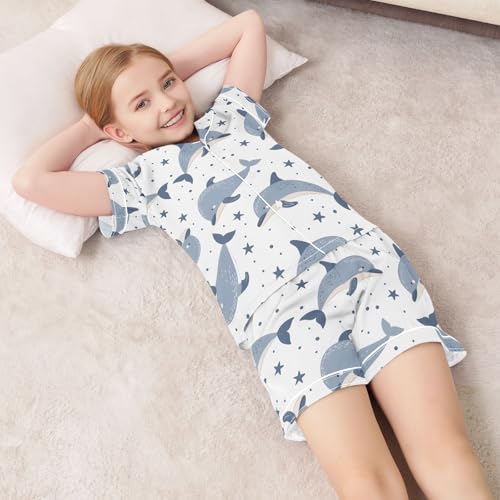 ALAZA Whale Star Fish White Pajamas Satin Pajama Set Short Sleeve Button Down Sleepwear 7