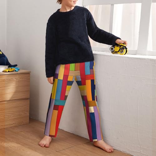Pajama Pants Pajama Bottoms with Elastic Waistband Sleepwear Lounge Pants, Colorful Wooden 4