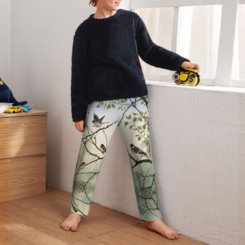 Pajama Pants Pajama Bottoms with Elastic Waistband Sleepwear Lounge Pants, Birds Tree Branches 1