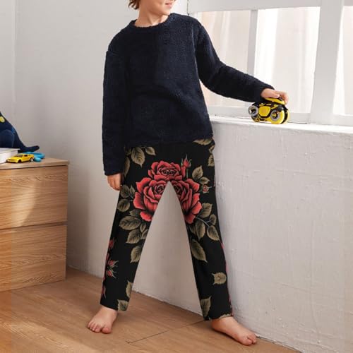 Pajama Pants Pajama Bottoms with Elastic Waistband Sleepwear Lounge PantsRetro Rose Flowers 1