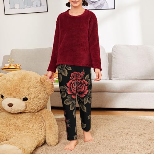 Pajama Pants Pajama Bottoms with Elastic Waistband Sleepwear Lounge PantsRetro Rose Flowers 2