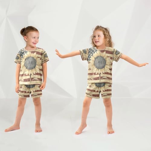 senya Short Sleeve Pajamas Sets Summer Cotton Sleepwear Vintage Sunflower with American Flag 1