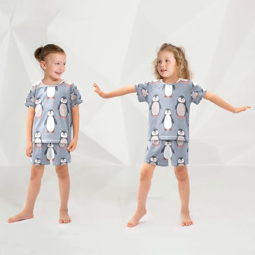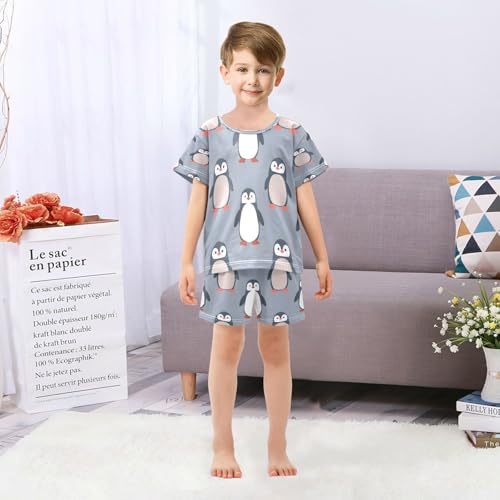 Short Sleeve Pajamas Sets Summer Cotton Sleepwear Black Red Penguin 2