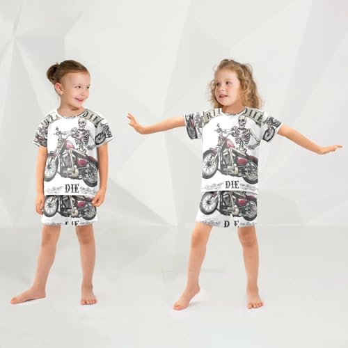 senya Short Sleeve Pajamas Sets Summer Cotton Sleepwear Skeleton Riding A Motorcycle 2