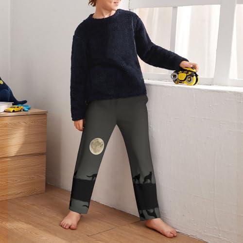 Pajama Pants Pajama Bottoms with Elastic Waistband Sleepwear Lounge Pants, Wolf Under Moon 2