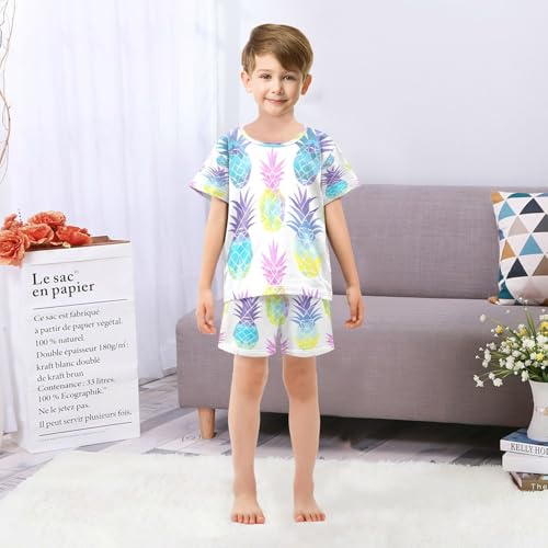 senya Short Sleeve Pajamas Sets Summer Cotton Sleepwear Blue Purple Pineapple 1