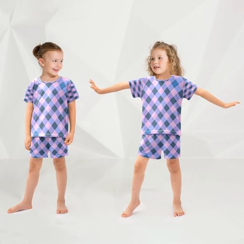 senya Short Sleeve Pajamas Sets Summer Cotton Sleepwear Purple and Blue Checkered 2