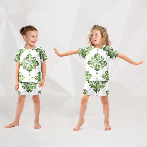 Summer Pajama Set Repeat Pattern Four Leaf Clover Tile Pattern, Short Sleeve Sleepwear Nightwear 3