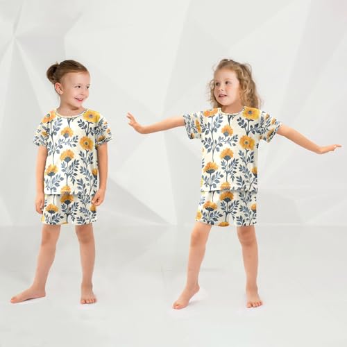 senya Short Sleeve Pajamas Sets Summer Cotton Sleepwear Indigo Marigold Flowers 1