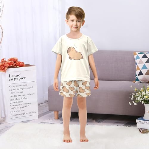 senya Wakes Up Cute Capybara Summer Pajamas Set Short Cotton Sleepwear 2 Piece 1