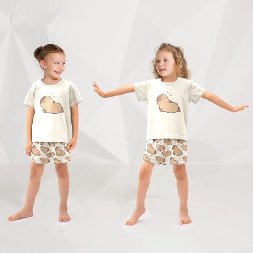 HOT ! senya Wakes Up Cute Capybara Summer Pajamas Set Short Cotton Sleepwear 2 Piece