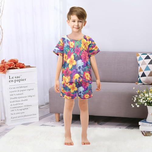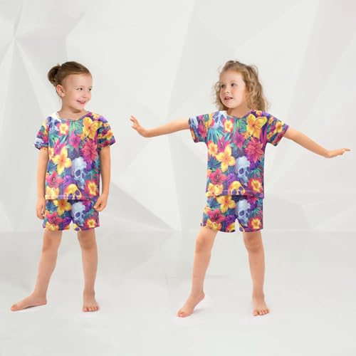 senya Short Sleeve Pajamas Sets Summer Cotton Sleepwear Flowers and Skulls 1
