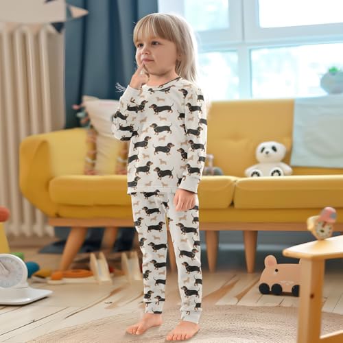 Black Dachshund Pattern Cute Pajama Sets Long Sleeve Top and Pants, Snug Fit Sleepwear for Night Wears 5