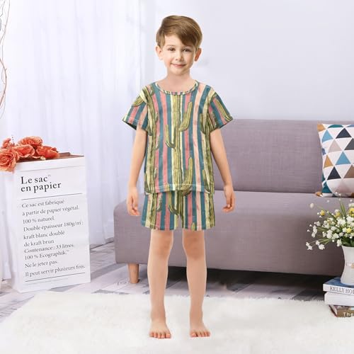 ALAZA Cactus Stripes Pajama Set Short Sleeve Sleepwear Soft Lounge Nightwear 1